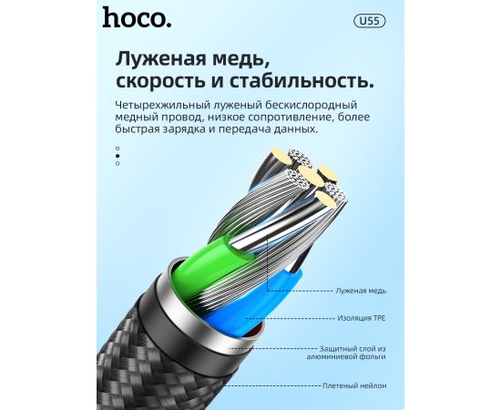 Дата-кабель HOCO U55 Outstanding lightning 1м (чёрный)