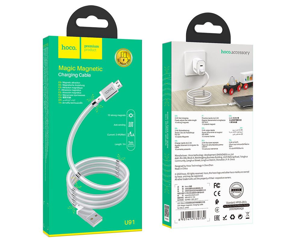 Дата-кабель HOCO U91 Magic magnetic micro 1м (белый)