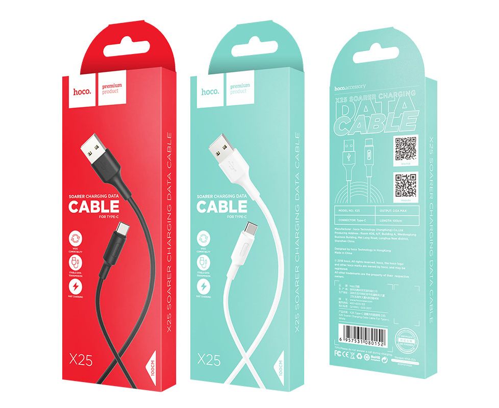 Дата-кабель HOCO X25 Soarer Type-C 1м (белый)