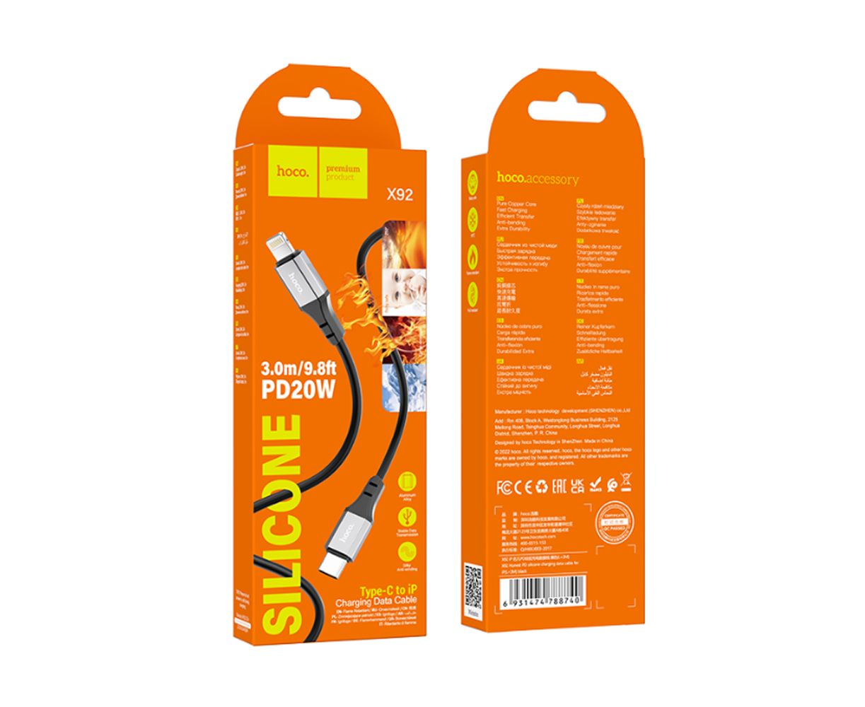 Дата-кабель HOCO X92 Honest PD silicone charging data cable for iP 3м (черный)
