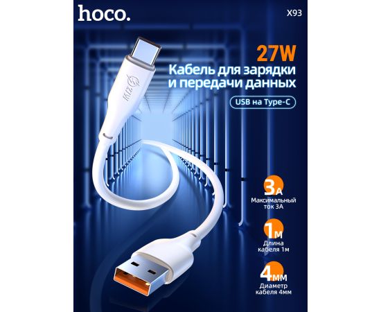 Дата-кабель HOCO X93 Force 27W Type-C 1м (белый)