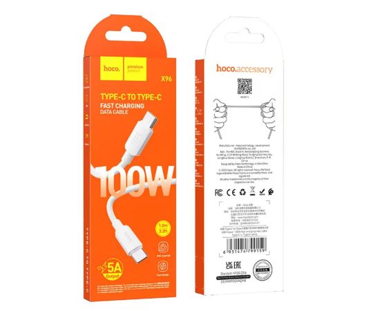 Дата-кабель HOCO X96 Hyper 100W fast charging data cable, Type-C + Type-C (белый)