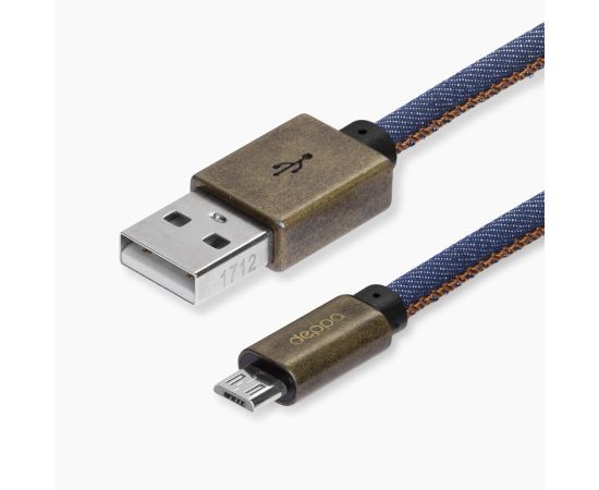 Дата-кабель Jeans USB - micro USB, медь/джинса 1.2м, синий, DEPPA, 72276