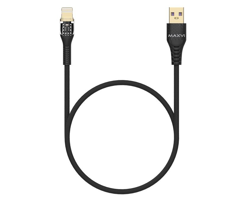 Дата-кабель Maxvi MC-31L USB-Lightning 2.4А, прозрачный корпус, LED подсветка, 1.2м, black