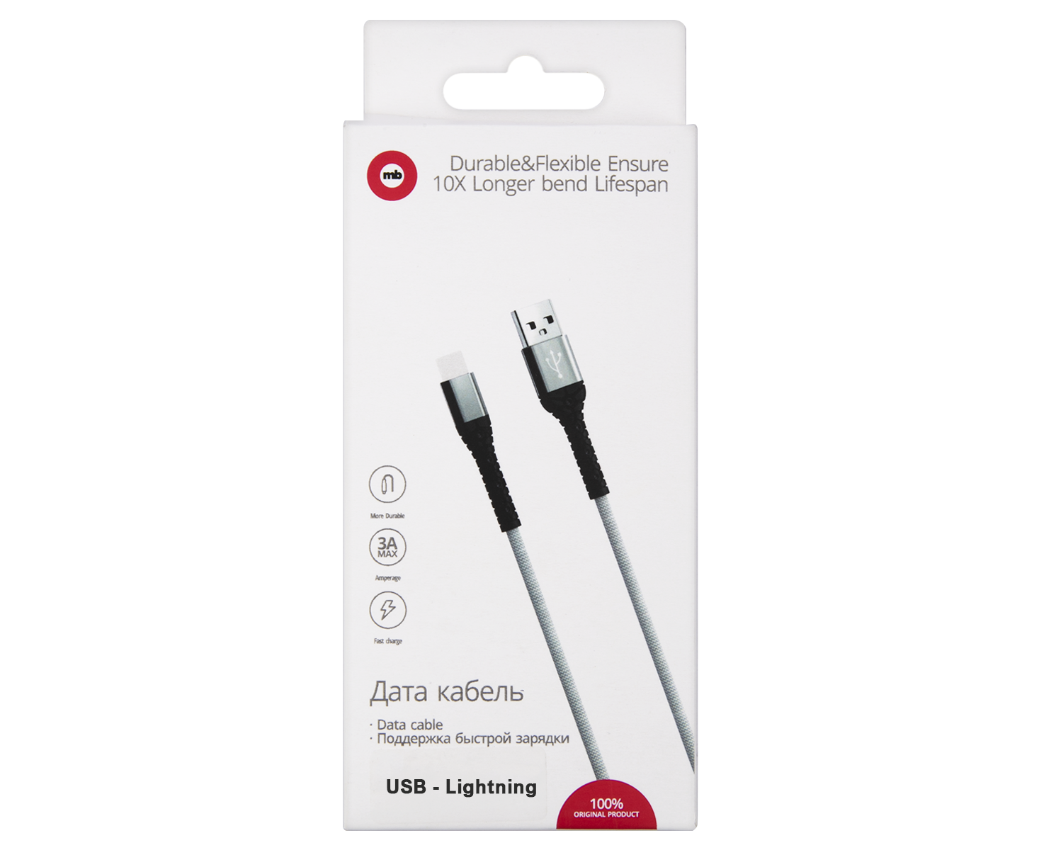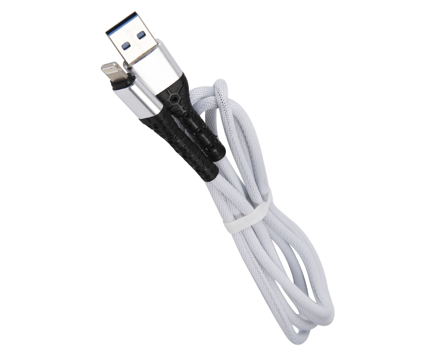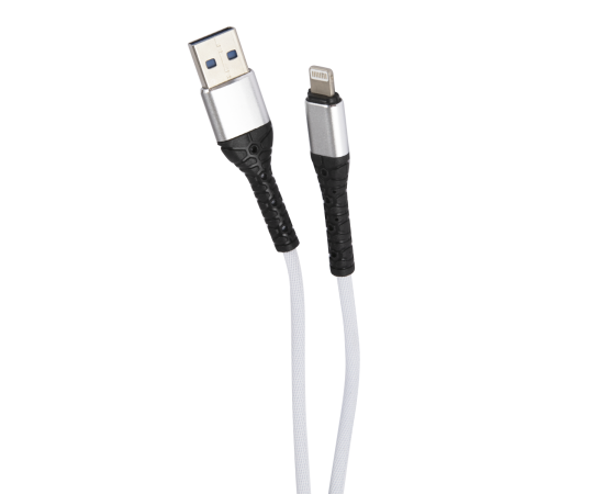 Дата-кабель mObility USB – Lightning, 3А, тканевая оплетка, белый
