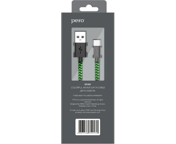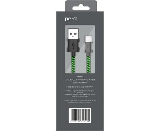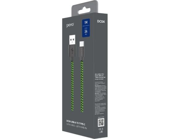 Дата-кабель PERO DC-04 Type-C, 3А, 1м Green-black Fast Charge