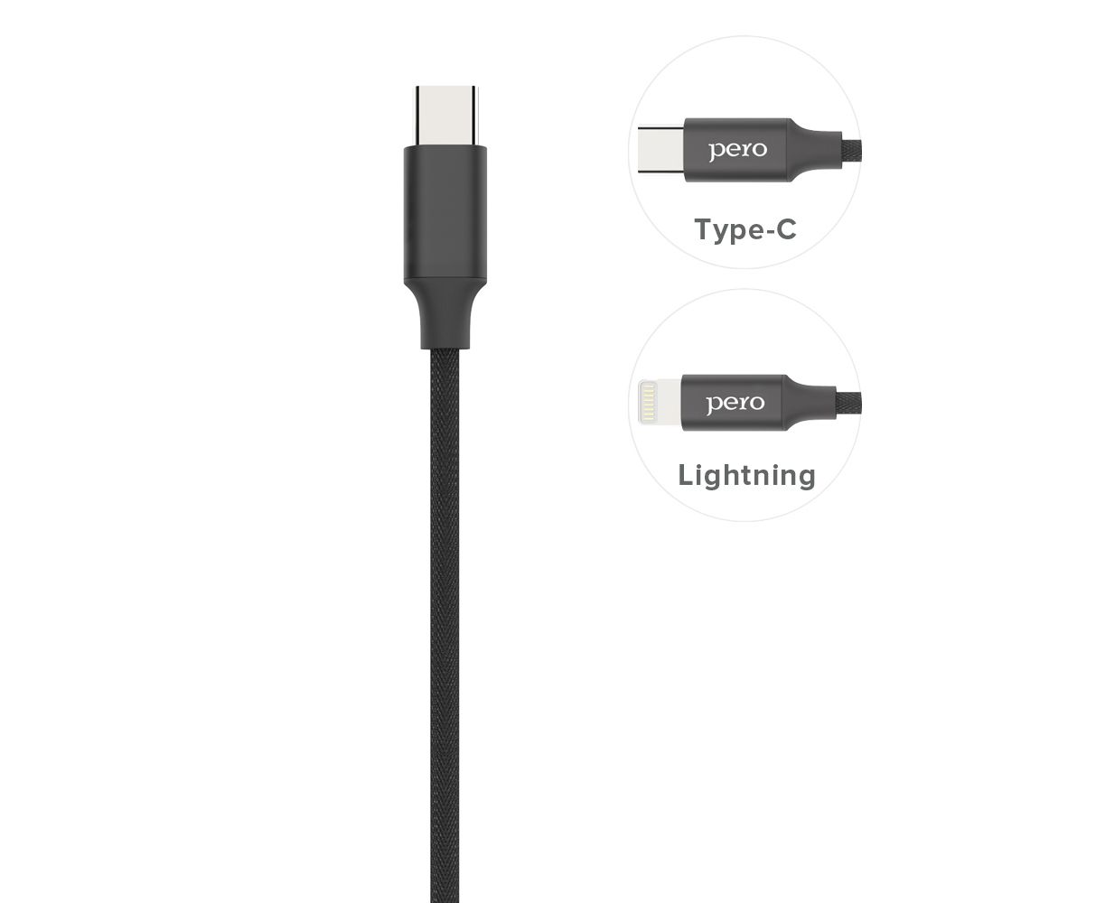 Дата-кабель PERO DC-05 Type-C to Type-C, 3А, 60W, 1м, Black