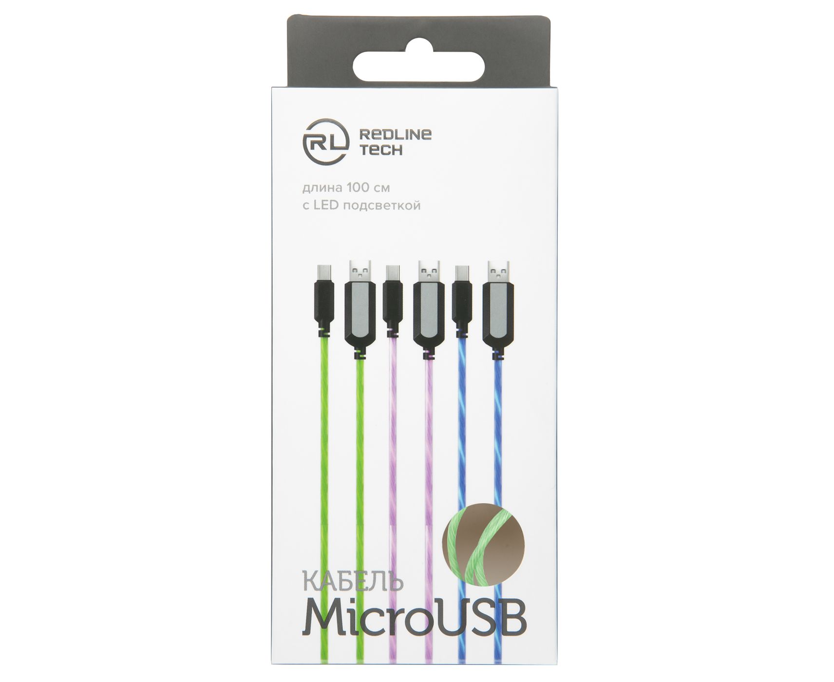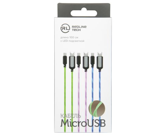 Дата-кабель Red Line LED USB - micro USB, зеленый