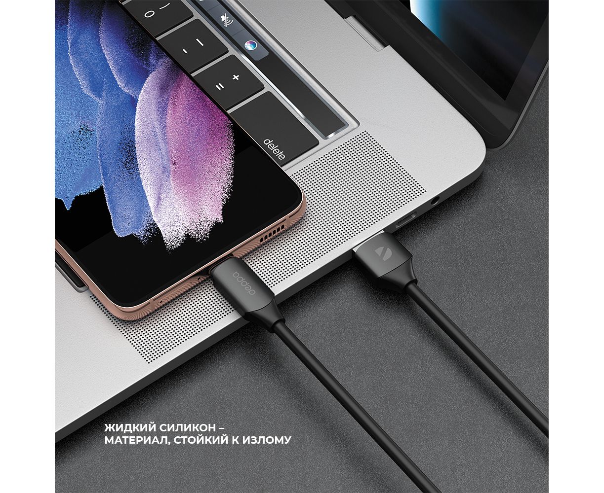 Дата-кабель Silk USB - USB-C, 66Вт, 6А, 1,2м, черный, Deppa