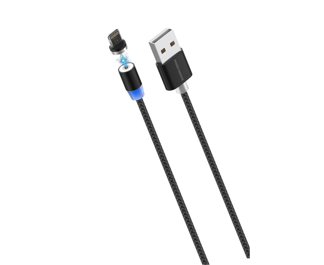 Дата-кабель Smart USB 2.4A для Lightning 8-pin Magnetic More choice K61Si нейлон 1м (Black)
