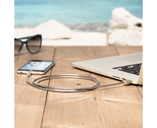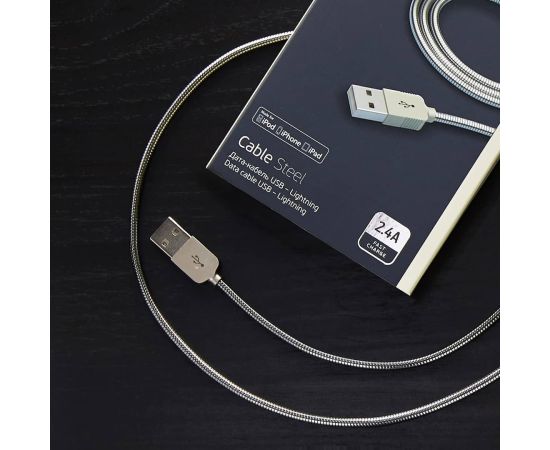 Дата-кабель Steel USB - Lightning, алюминий, MFI, 1.2м, стальной, Deppa, 72272