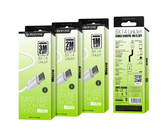 Дата-кабель USB 2.0A для micro USB Borofone BX14 ПВХ 3м (White)
