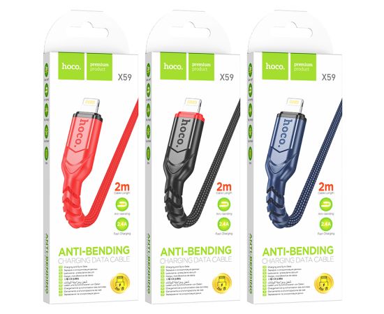 Дата-кабель Hoco X59 в нейлоновой оплётке предназначен для передачи данных и подзарядки цифровых устройств. Универсальный кабель подойдет для электронной и цифровой техники, имеющей разъем Lightning 8-pin. Кабель легкий, компактный и практичный, его легко можно взять с собой куда угодно. Поддерживает зарядку устройств с максимальной силой тока 2.4А. Длина кабеля 2м. Выполнен в трех цветах.