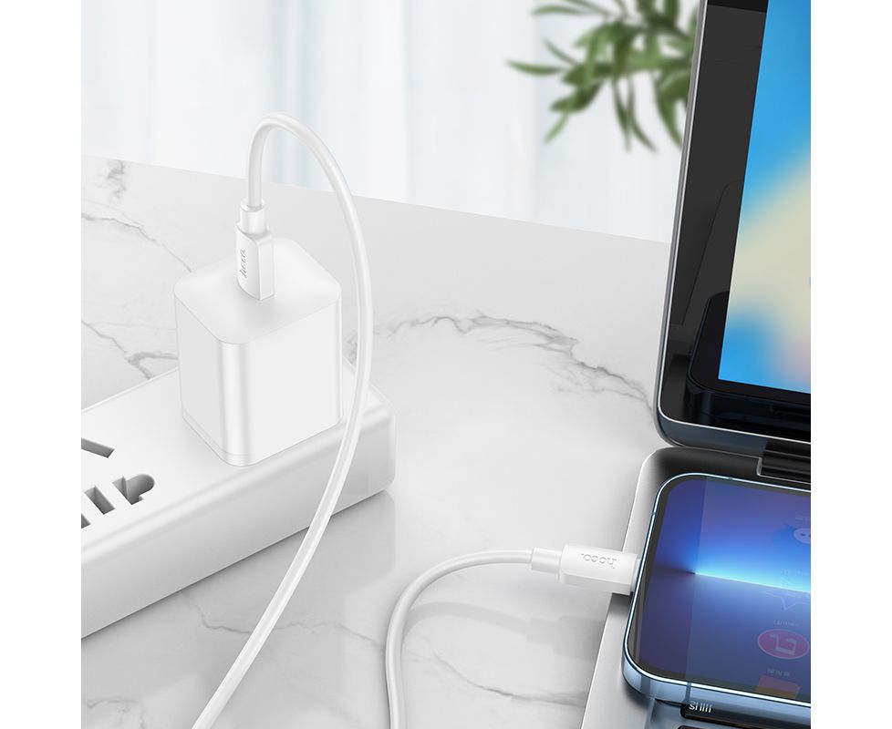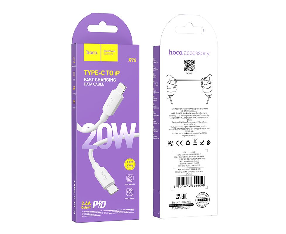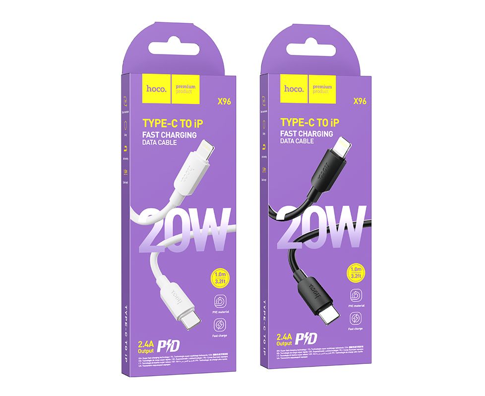 Дата-кабель USB 2.4A PD 20W для Lightning 8-pin Type-C Hoco X96 ПВХ 1м (White)