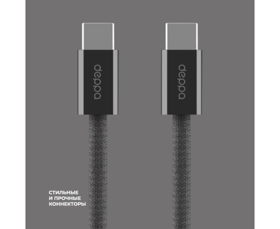 Дата-кабель Zeus, USB-C - USB-C, 1,5м, 5A, USB4, 8k60Hz, черный, Deppa, 72548