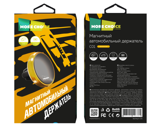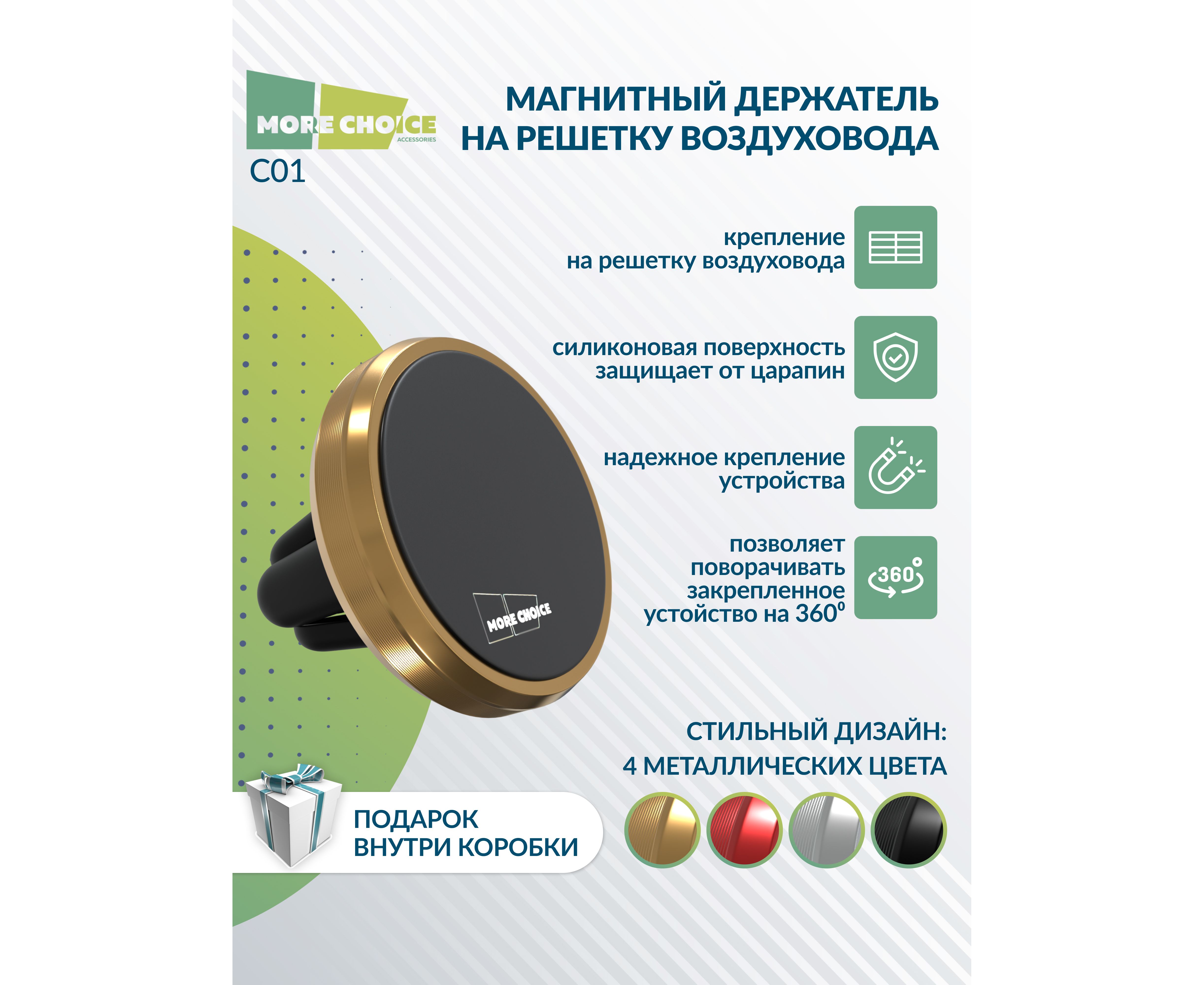 Держатель авто магнитный More Choice C01 (Gold)