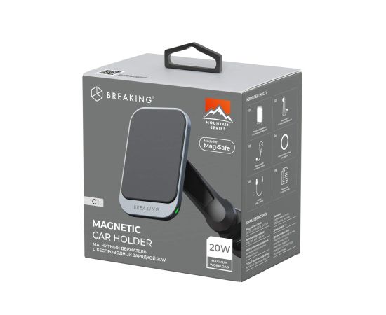 Держатель автомобильный Breaking C1, Mag•Safe Qi, 20W, MOUNTAIN SERIES (Графит)