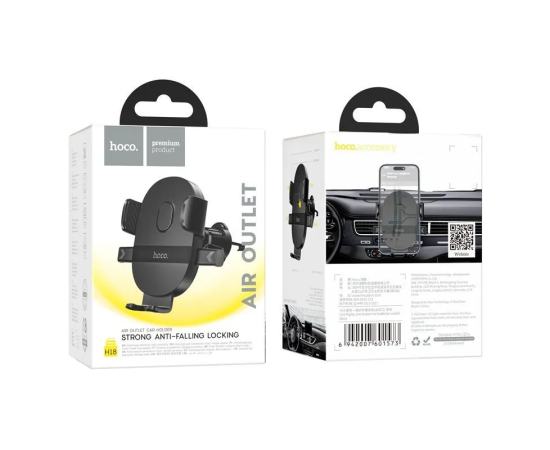 Держатель автомобильный HOCO H18 Mighty, для смартфона, пластик, воздуховод, цвет: чёрный (1/120)