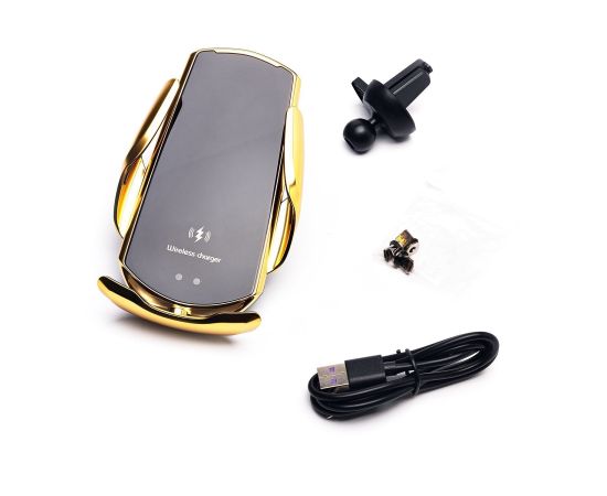 Держатель автомобильный с беспроводной зарядкой - гравитационный Q3 (rep) в дефлектор (gold)(226622)