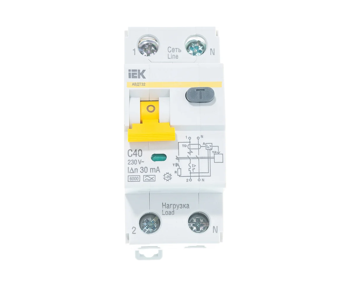 Технические характеристики IEK АВДТ-32 1п+N, C, 40А, 30мА MAD22-5-040-C-30