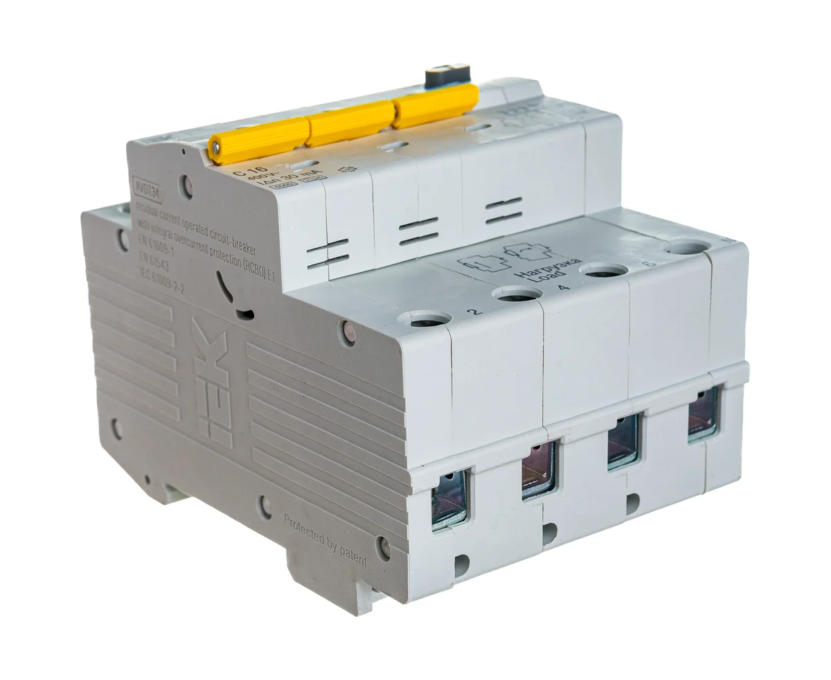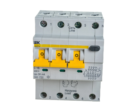 Дифавтомат IEK АВДТ 34 (MAD22-6-016-C-30) 16A тип C 6kA 30мА A 4П 400В 4мод белый (упак.:1шт)