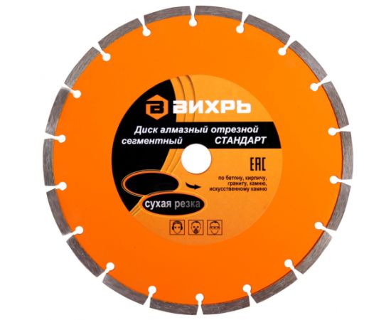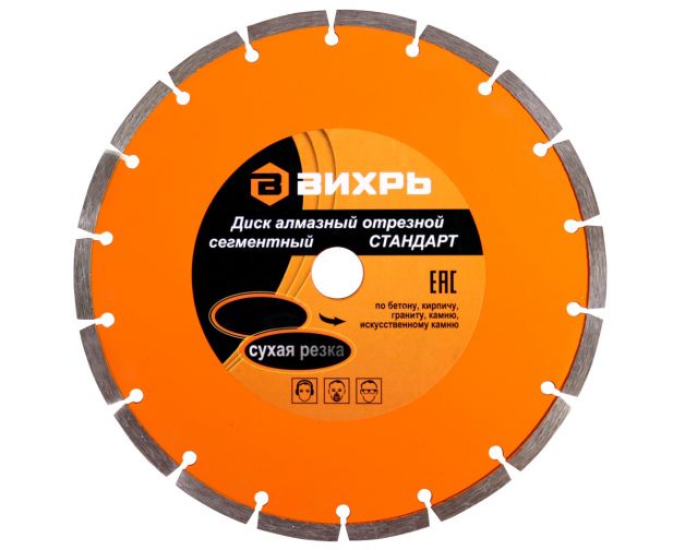 Диск алмазный отрезной сегментный Вихрь 73/10/3/15 Стандарт, 180 х 22,2мм, сухая резка