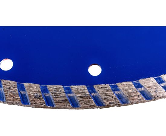 Особенности: диск с рифленой кромкой имеет более чистый и аккуратный по сравнению с сегментными дисками рез. За счет турбированной кромки увеличивается скорость реза, отверстия на теле диска способствуют лучшему охлаждению и продлевают срок службы. Подходит для сухого и мокрого реза.