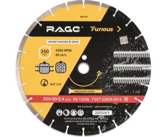 Диск алмазный сегментированный по железобетону и камню VIRA rage furious (600350) 350 мм