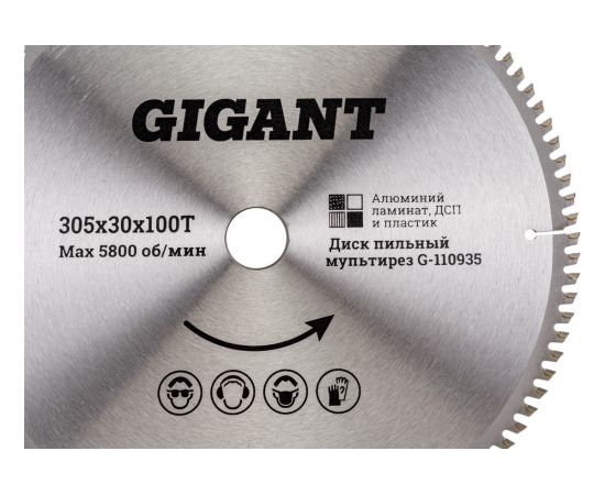 Диск пильный мультирез по алюминию, ламинату, пластику, ДСП Gigant G-110935 305x30x100Т 100 зубьев