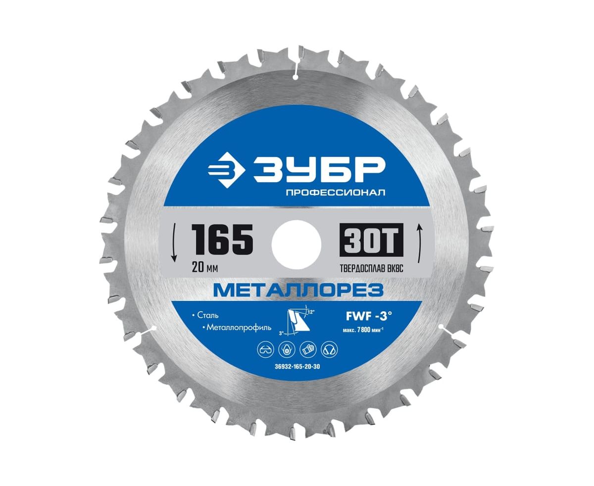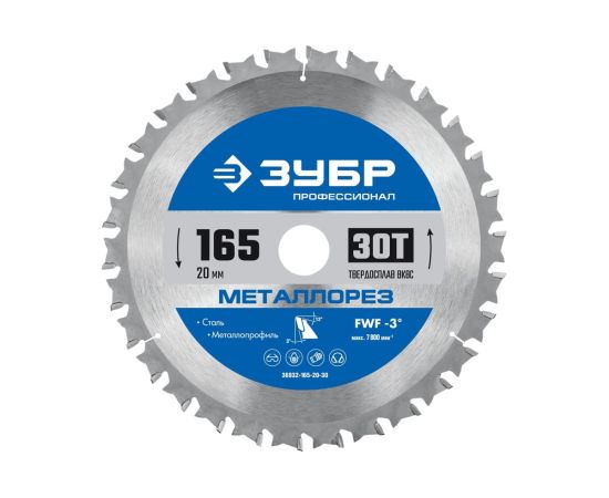 Технические характеристики пильного диска по металлу и металлопрофилю ЗУБР 36932-165-20-30