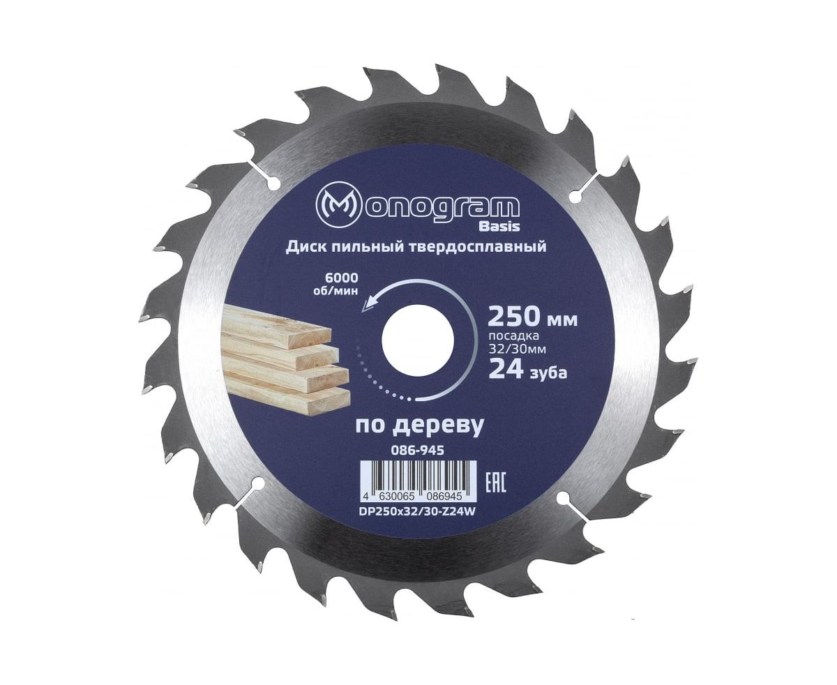 Диск пильный твердосплавный MONOGRAM Basis 086-945 250х32/30мм, 24 зуба