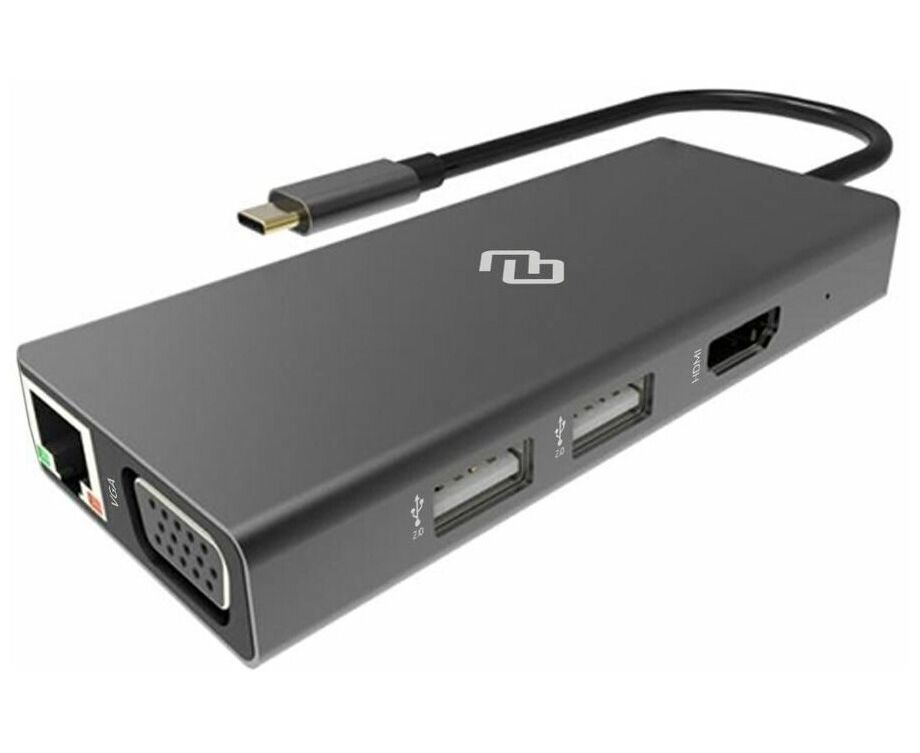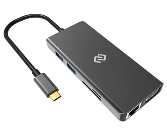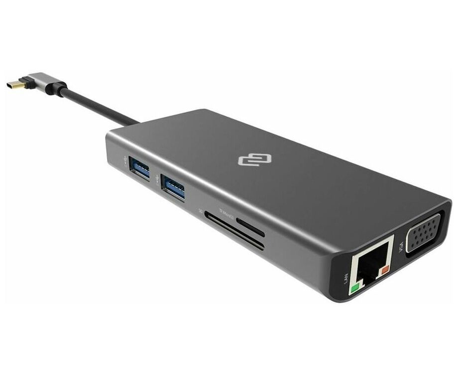 Type-C док-станция DIGMA, 11 портов (HDMI (4K@30HZ, FULL HD@60Hz), VGA, RJ45, 2xUSB 2.0, 2xUSB 3.0, Audio 3.5mm, PD 3.0 USB-C 60W, MicroSD, SD)