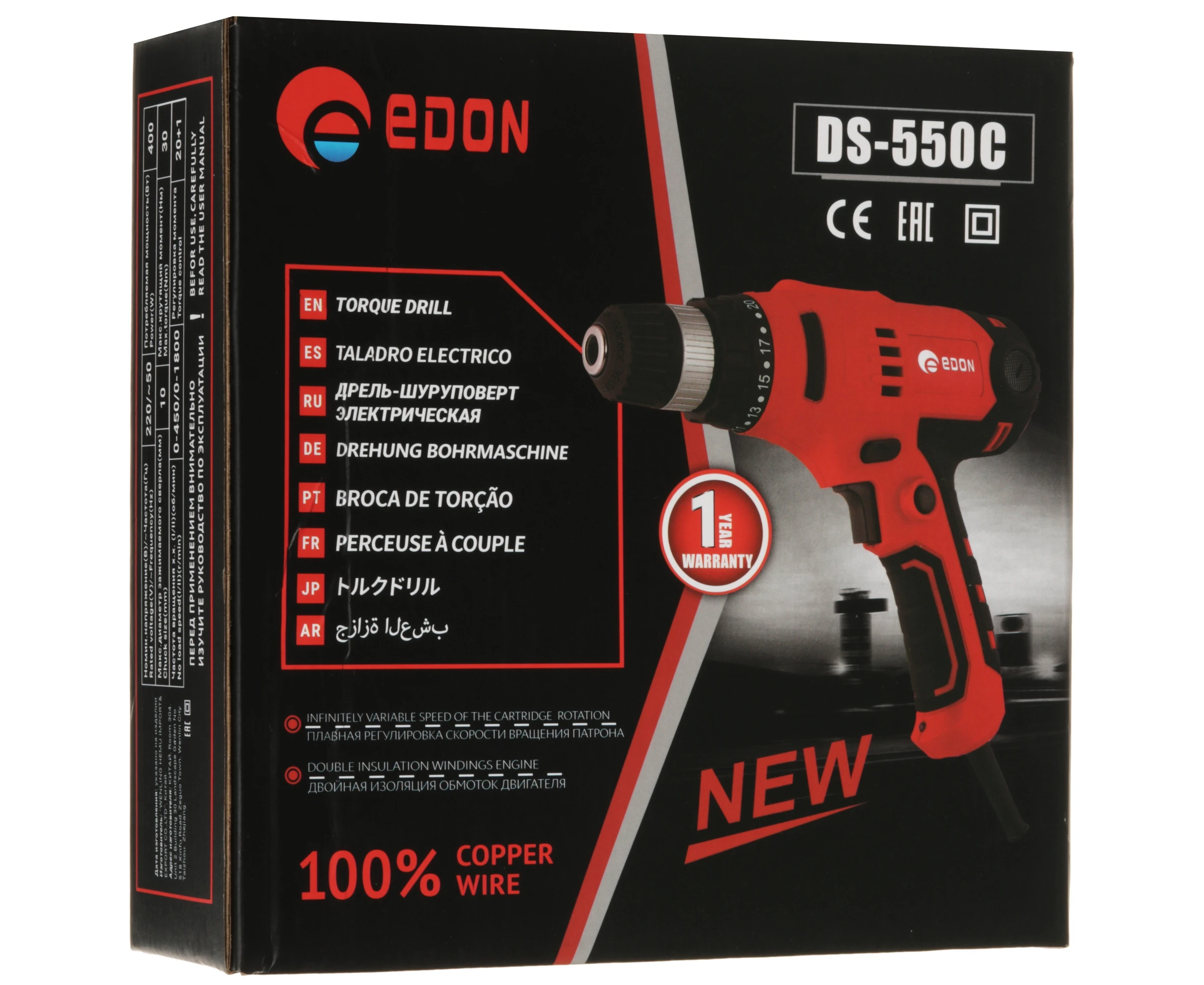 Дрель безударная Edon DS-550C 550Вт патрон быстрозажимной реверс (19527)