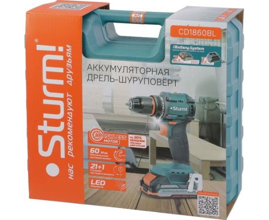 Дрель-шуруповерт Sturm! CD1860BL 2x2.0Ач+ЗУ