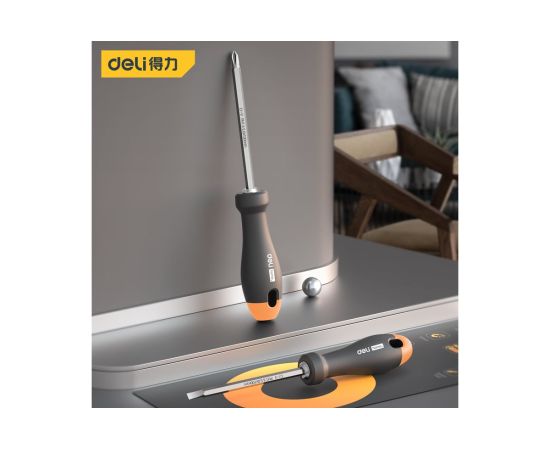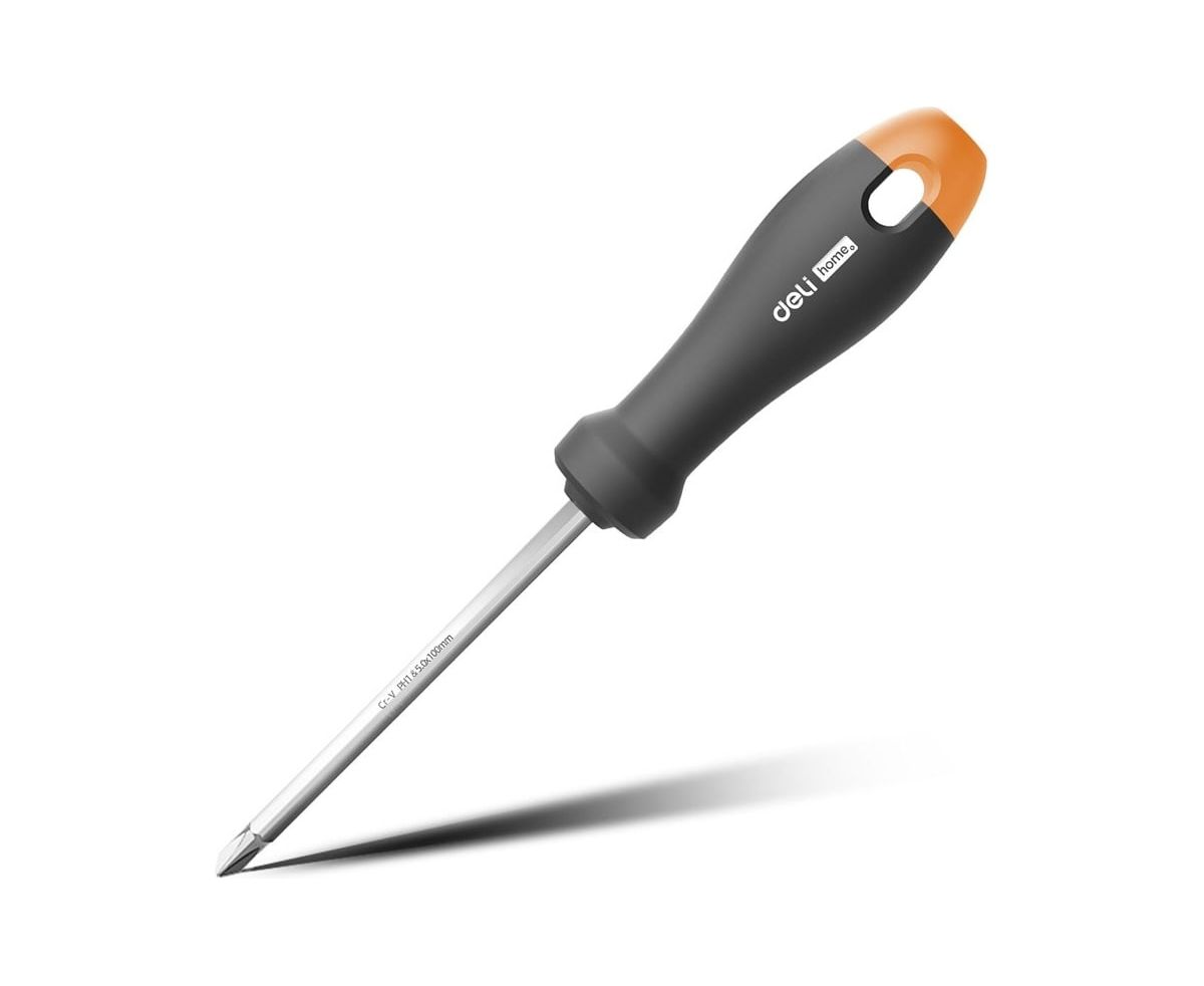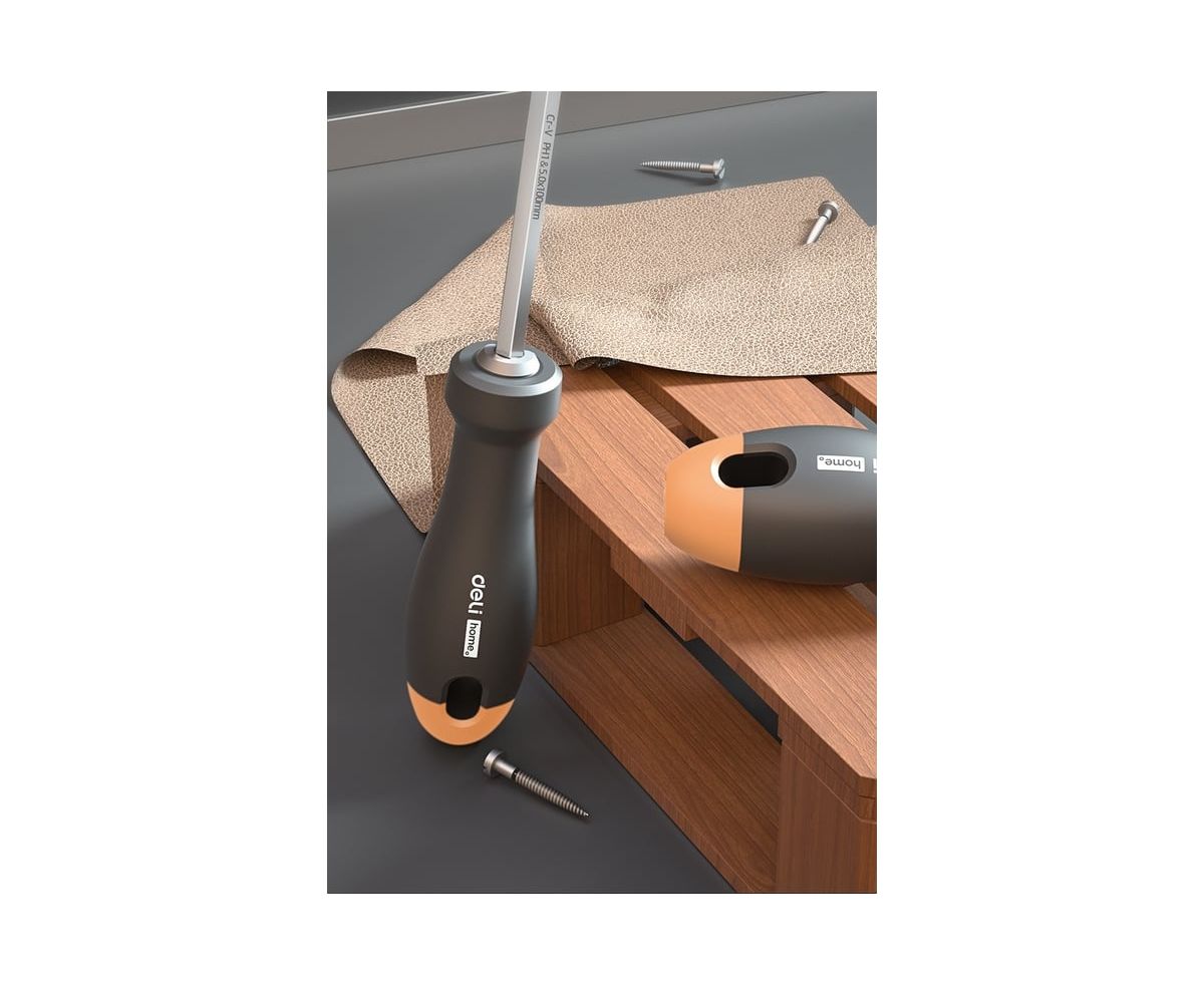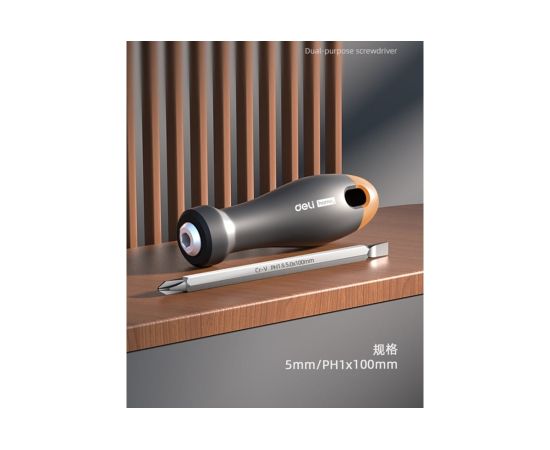 Двухсторонняя отвертка Deli "HomeSeriesGray"HT1055CSL5+PH1х100мм,Cr-V,SoftTouch используется для работ с резьбовыми соединениями в процессе ремонта или монтажа.