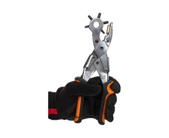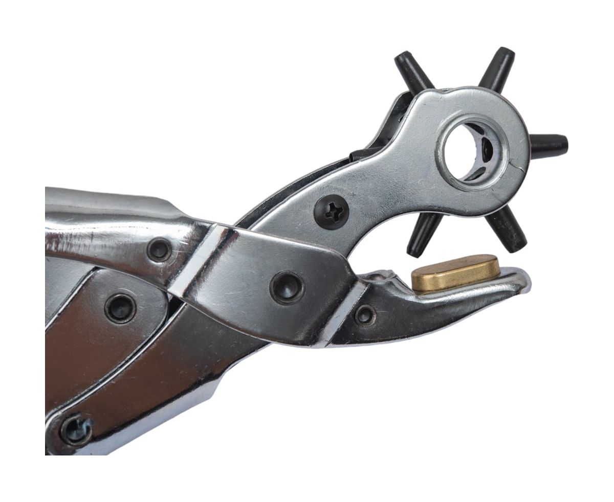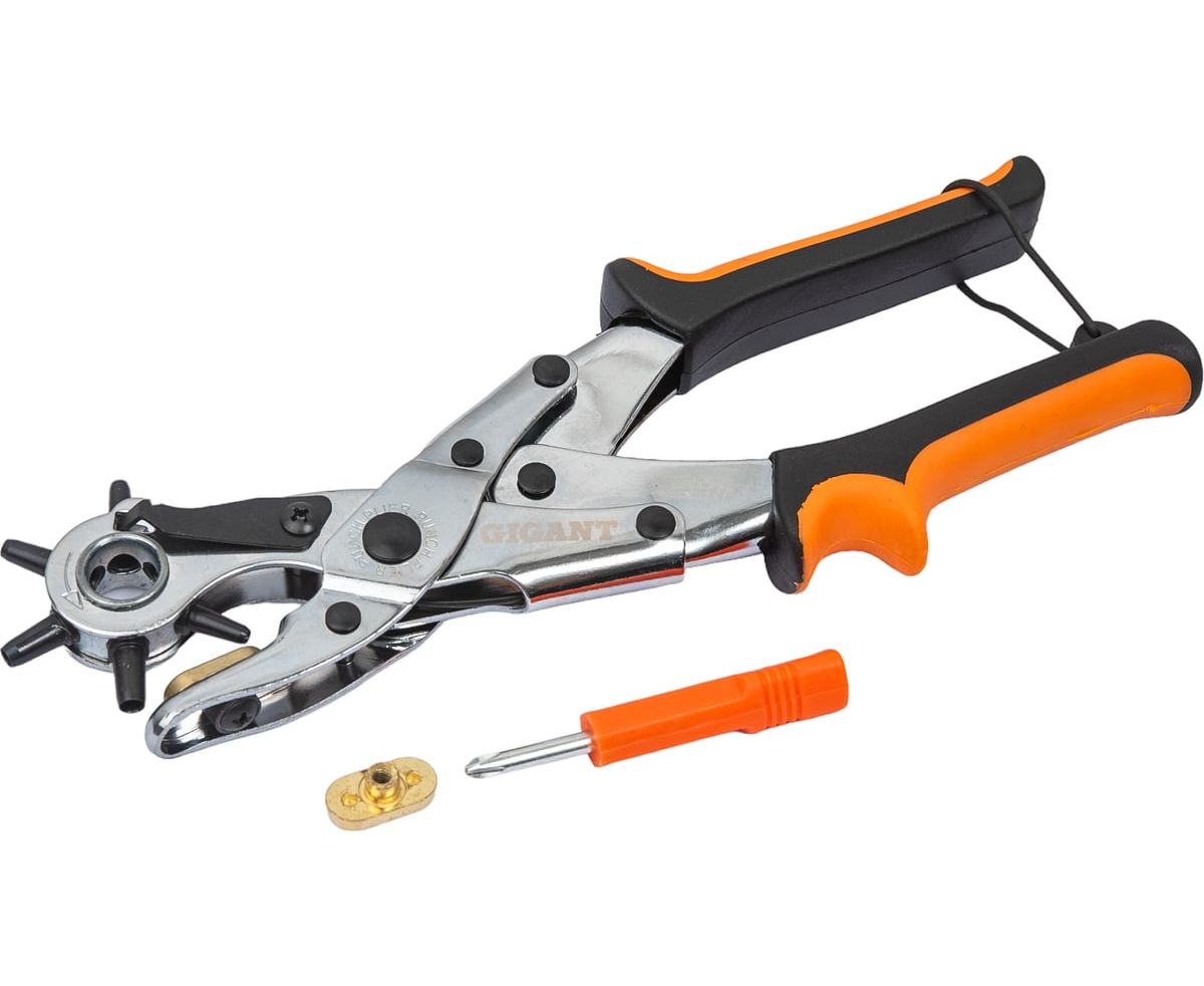 Револьверный дырокол для кожи Gigant 2-4,5мм GHT-24 также подойдет для резины, пластика и картона. Простой револьверный механизм позволяет быстро настроить нужный диаметр для пробивания отверстия. Инструмент выполнен из прочной стали.