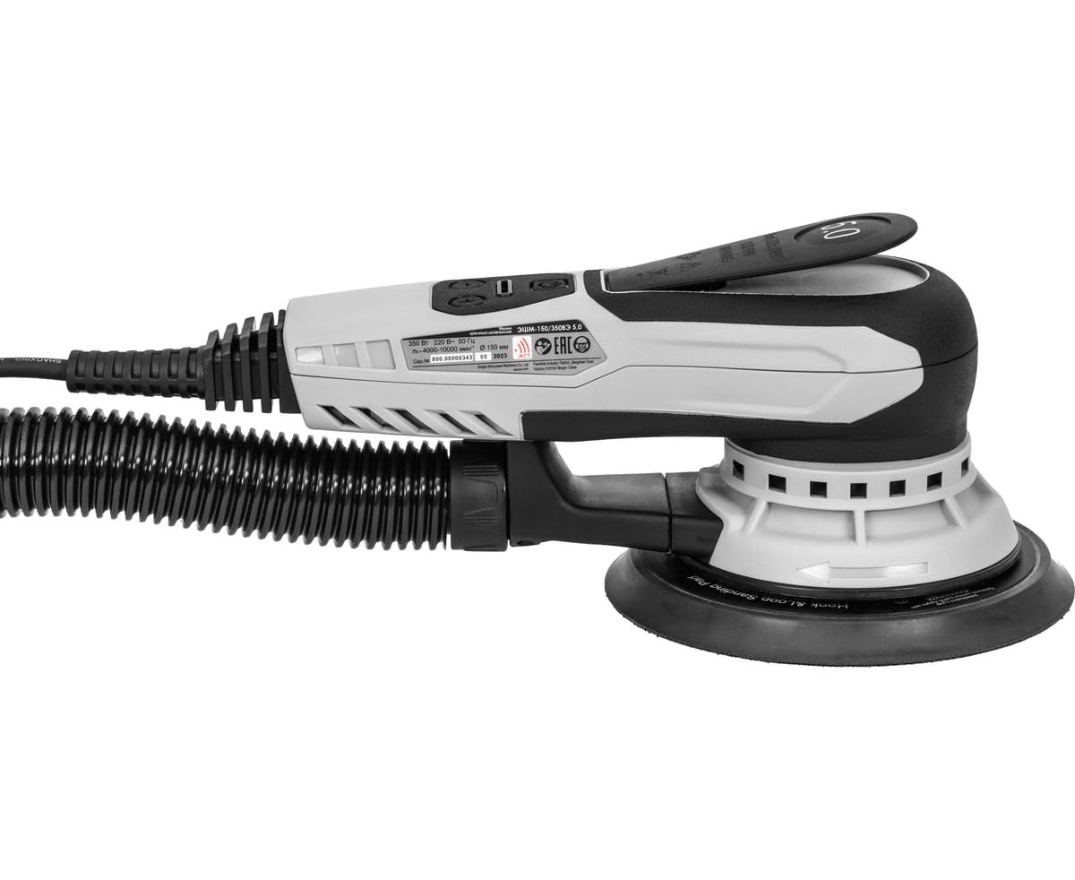 Эксцентриковые профессиональные шлифмашины ИНТЕРСКОЛ ЭШМ-150/350ВЭ оборудованы бесщеточным (вентильным) сетевым двигателем, работающим под управлением цифрового электронного блока. Повышенный коэффициент полезного действия двигателя и отсутствие редуктора обеспечивают шлифмашине высокую энергоэффективность и рекордно малый вес. В сочетании со схемой динамической балансировки это снижает массу изделия и позволяет оператору машины эффективно шлифовать длительное время не уставая. Эквивалентная мощность в пересчете на традиционную схему с коллекторным двигателем и редуктором составляет 600Вт, что достаточно практически для всех операций эксцентрикового шлифования. Продуманная конструкция пылеудаления при эксплуатации с пылесосом удаляет практически всю образующуюся при шлифовке пыль, повышая качество шлифовки и сохраняя чистоту на рабочем месте. Регулировка оборотов от 4000 об/мин до 10000 об/мин с шагом 1200 от/мин, эксцентриситет 5,0мм и тормоз тарелки обеспечивает как высокую эффективность шлифовки, так и финишное качество поверхности, потому что частицы абразива каждый раз проходят по новой траектории.