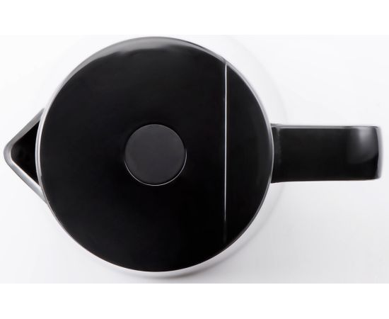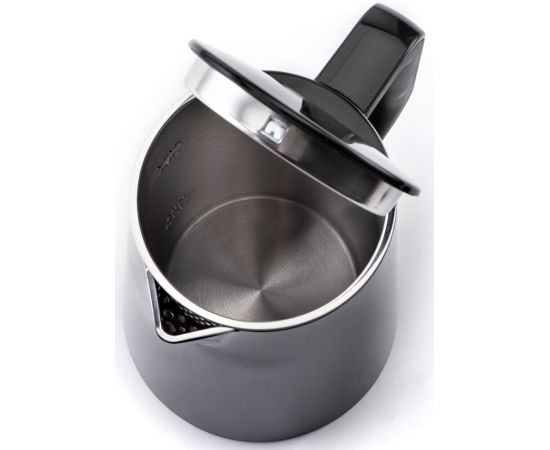 Внешняя поверхность чайника изготовлена из высококачественного черного пластика, что позволяет избежать случайного ожога. Внутренняя поверхность полностью металлическая, выполненная из нержавеющей стали устойчива к окислению и коррозии.