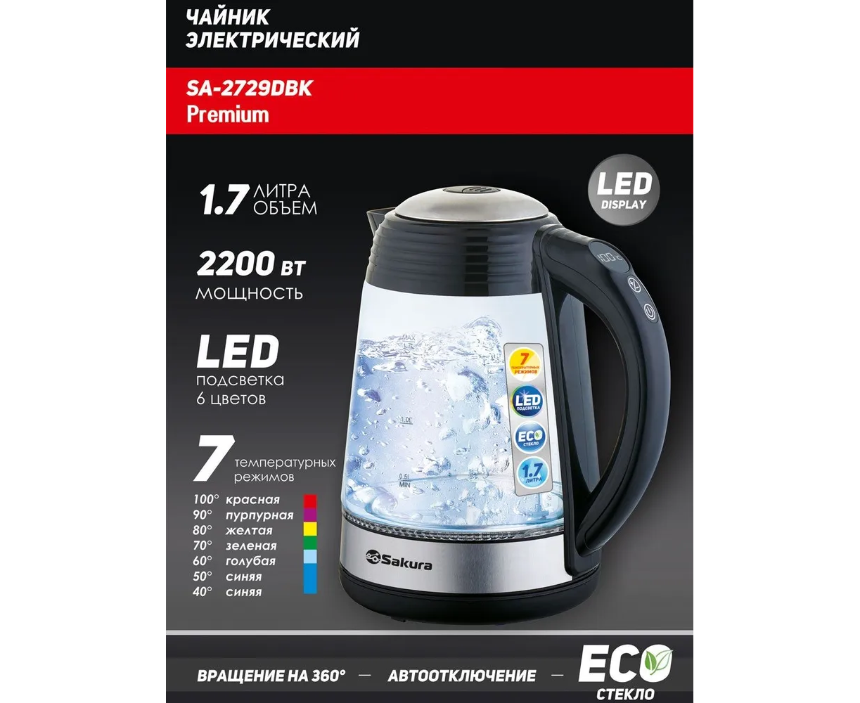 Электрочайник SAKURA SA-2173DBK LED дисплей