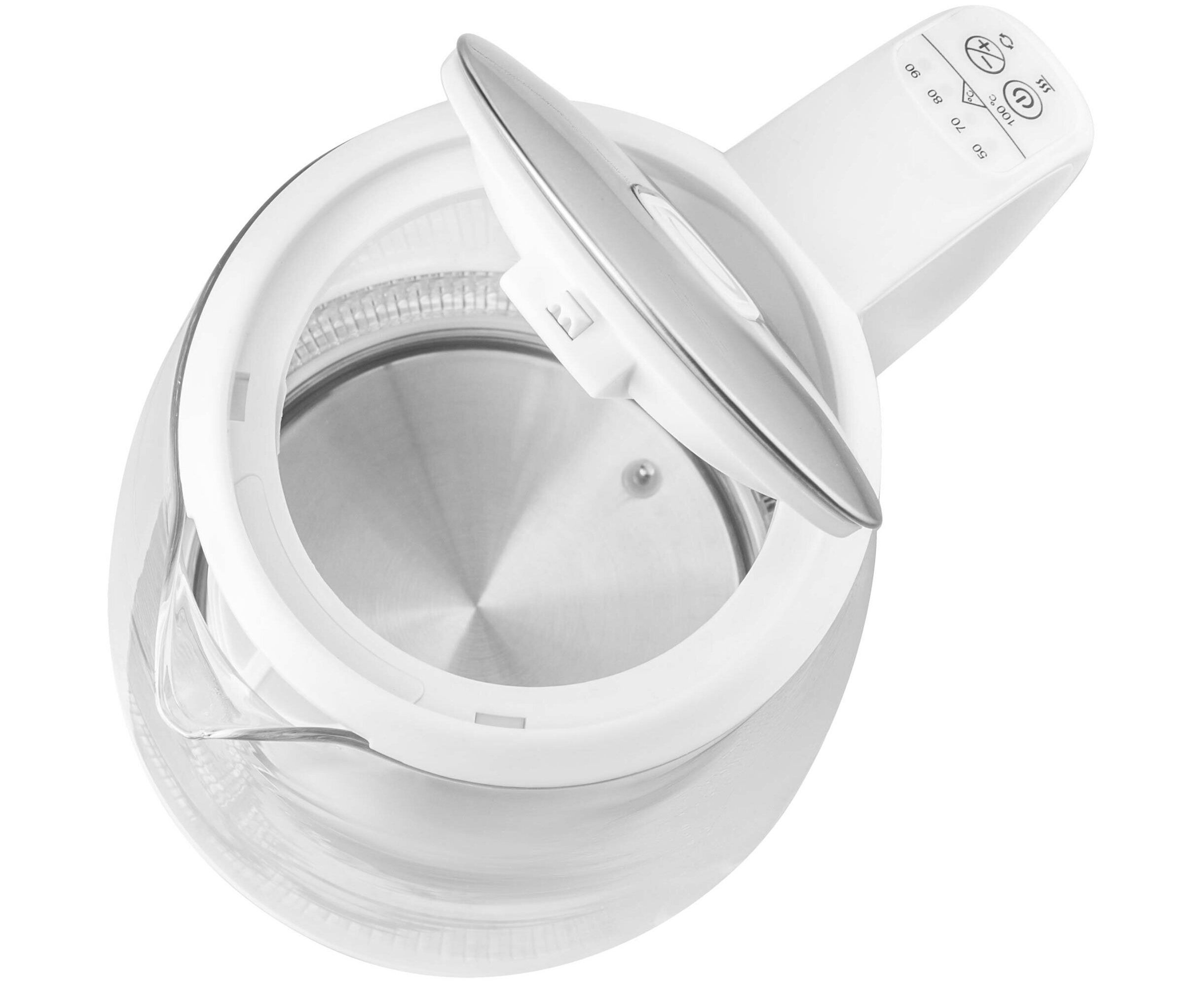 Функция поддержания температуры. Нагрев воды до выбранной температуры: 50-100 град. C. Фильтр для отделения грязи и осадка. Двусторонний индикатор уровня воды. Хранение шнура питания в подставке. Внутренняя светодиодная подсветка. Подходит также для пользователей с нарушениями слуха (светящийся индикатор работы). Нагревающееся дно из нержавеющей стали с закрытой нагревательной спиралью. Простой механизм открытия крышки нажатием кнопки.