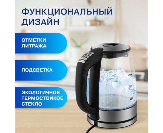 Пользоваться чайником невероятно удобно: он способен поворачиваться на 360°, а его крышка открывается механически. Ваши напитки будут надежно защищены от накипи, благодаря специальному съемному фильтру на носике устройства. Нагревательный элемент прибора встроен в плоское дно и защищен стальной пластиной, поэтому ухаживать за устройством очень легко. Устройство оснащено защитой от перегрева и автоматически отключается при закипании или отсутствии воды (следите за ее уровнем по шкале).