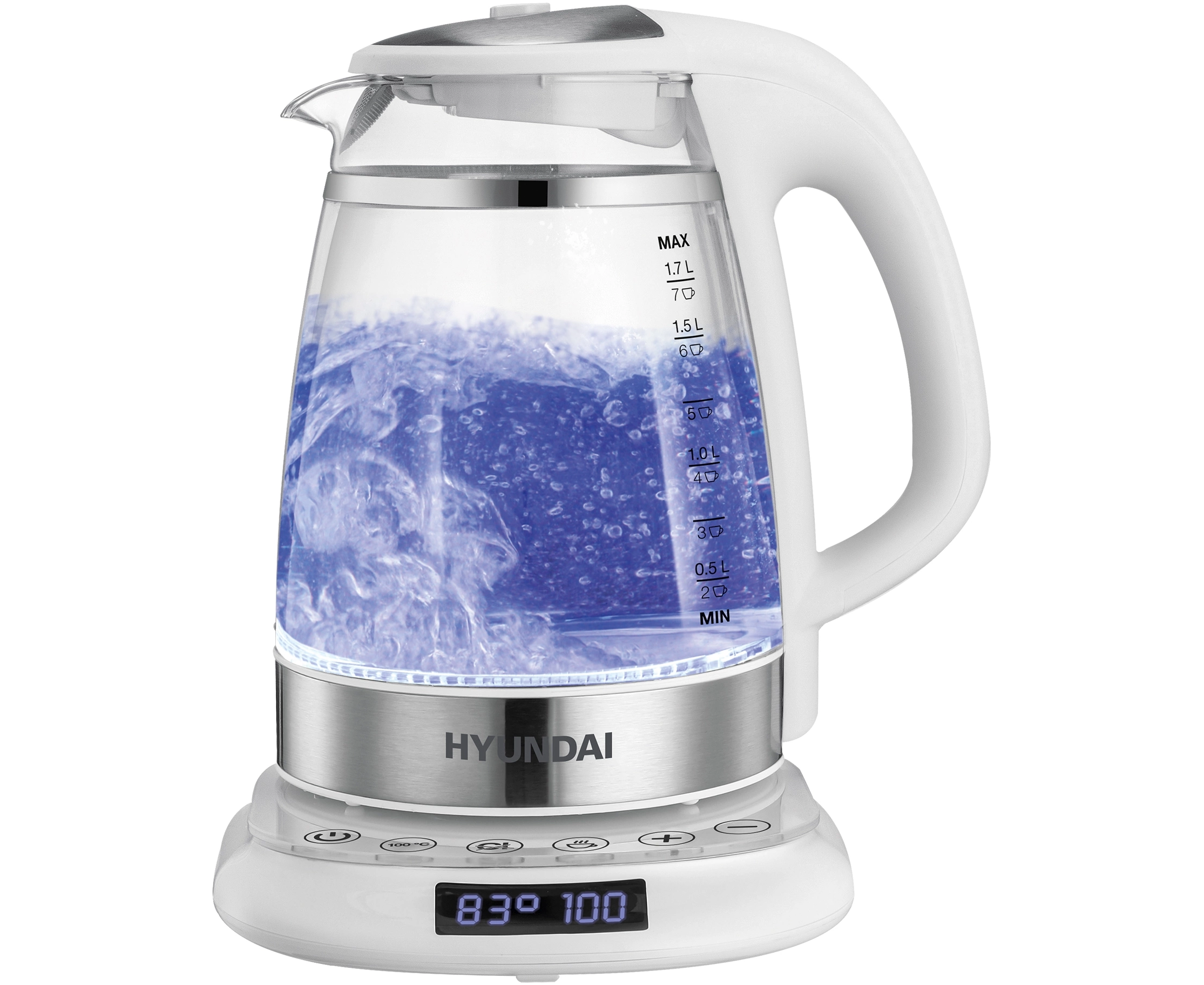 Электрочайники Hyundai HYK-G5507 белый/серебристый
