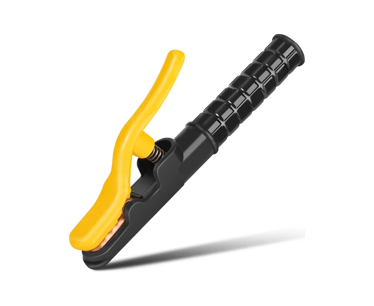 Медная губка с насечками обеспечивает плотный контакт, а мощная пружина гарантирует прочную фиксацию электрода без проскальзывания.