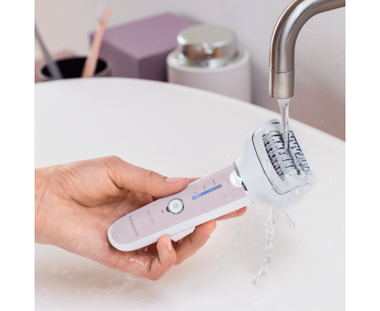 Набор из 7 предметов (эпиляционная насадка для ног и рук, маленькая насадка для эпиляции, насадка для деликатной эпиляции, насадка для глубокого пилинга, насадка для стоп, чехол для хранения, чистящая щеточка)