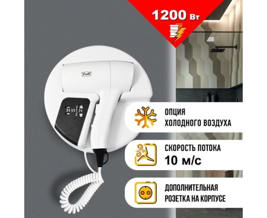 Фен PUFF 1202B (1405.032) белый и черный