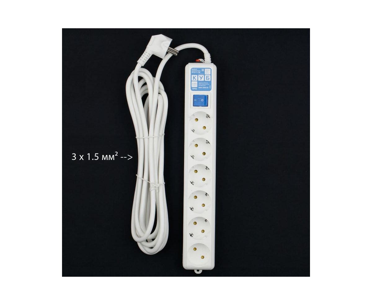 Технические характеристики Power Cube PC PRO 5м, 6розеток LCконтур, 16А/3,5кВт SPL6-16-P-5М