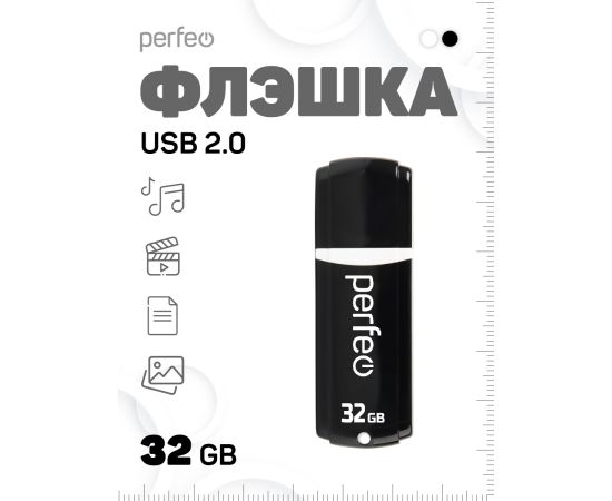 Флешка Perfeo USB 32GB C02 / Чёрная, (Арт. PF-C02B032)