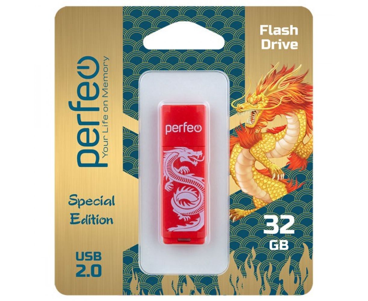 Флешка Perfeo USB 32GB C04 / Dragon Красная, (Арт. PF-C04RD032)