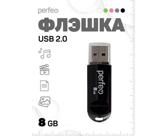 Флешка Perfeo USB 8GB C03 / Чёрная, (Арт. PF-C03B008)