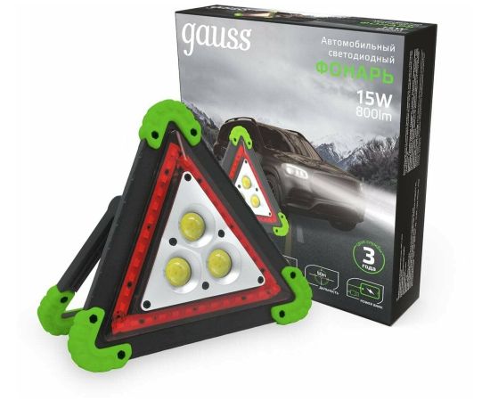 Фонарь автомобильный Gauss GFL802 зеленый/черный 15Вт лам. светодиод.